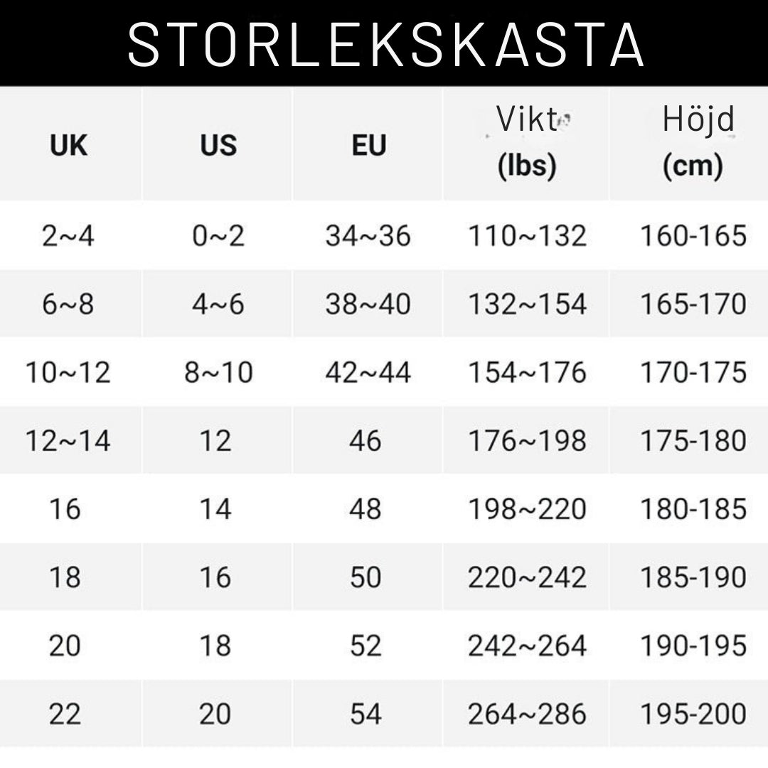 Storlekar från XS till 3XL