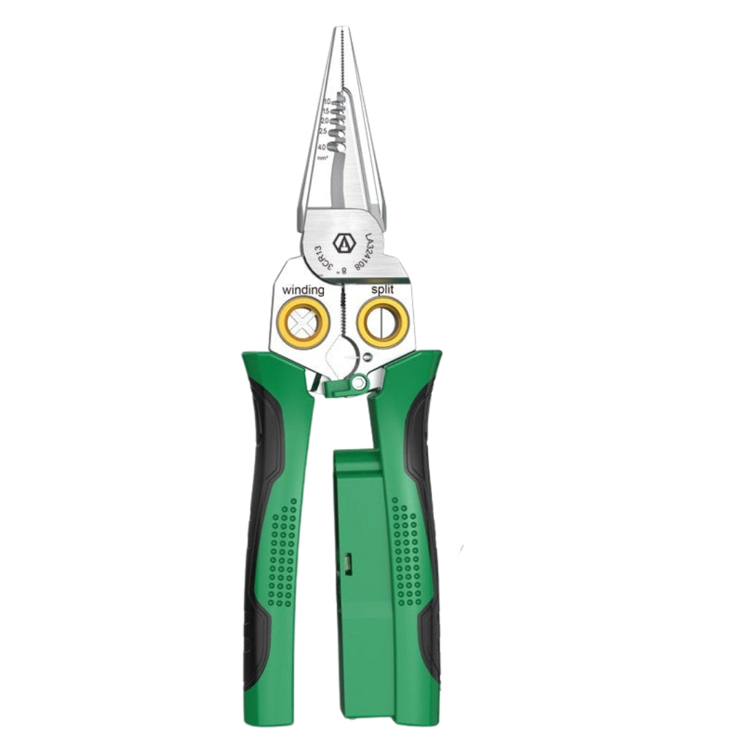 Kombinerar 8 viktiga funktioner i en enda tång, vilket sparar både tid och plats i verktygslådan.