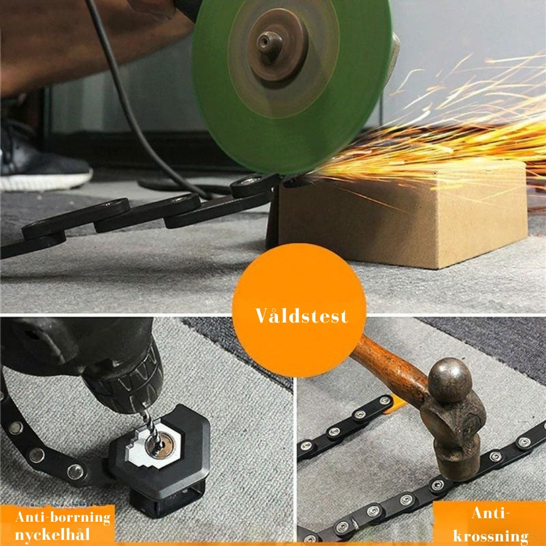 Tillverkat i härdad stål- och zinklegering – motstår sågning, borrning och brutala angrepp.