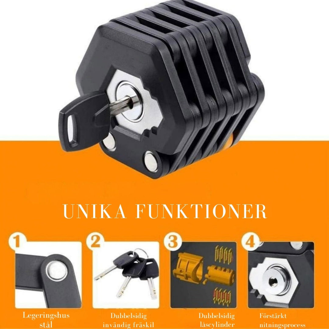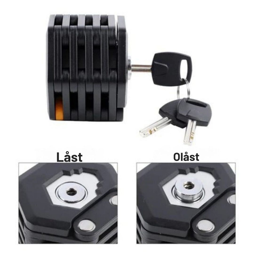LåsStark är ett kompakt men extremt tåligt cykellås som skyddar din cykel mot stöld – varje dag, var du än parkerar. Vikbart, bärbart och byggt för att stå emot proffs-tjuvar.